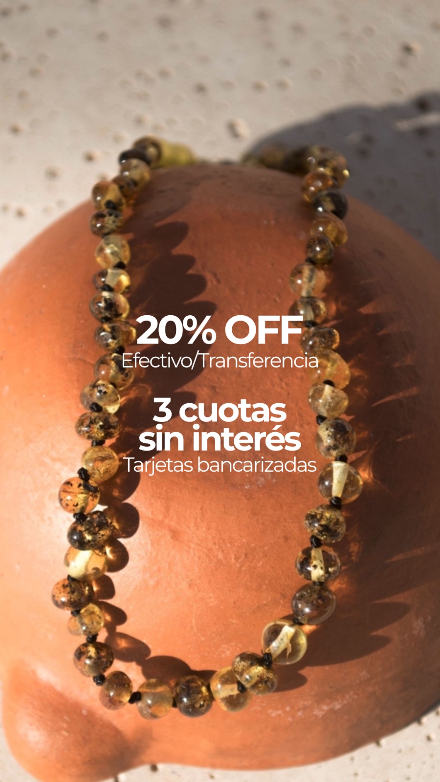 El ámbar contiene ácido succínico, conocido por sus propiedades antiinflamatorias. Se recomienda su uso a partir de los 6 meses de edad, como collar, pulsera o tobillera, retirándolo durante el sueño.