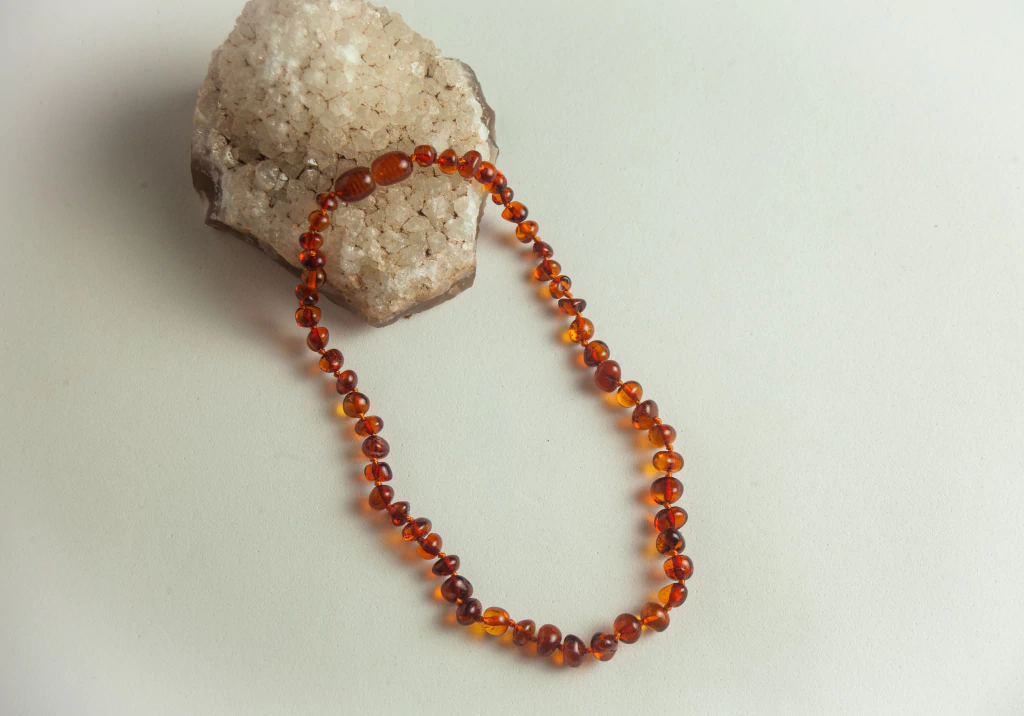 Collar de Ámbar para Bebés y Niñxs- El ámbar en bebés suele utilizarse para aliviar cólicos y las molestias tan características del proceso de dentición, gracias a su contenido de ácido succínico, conocido por sus propiedades antiinflamatorias y analgésicas naturales.